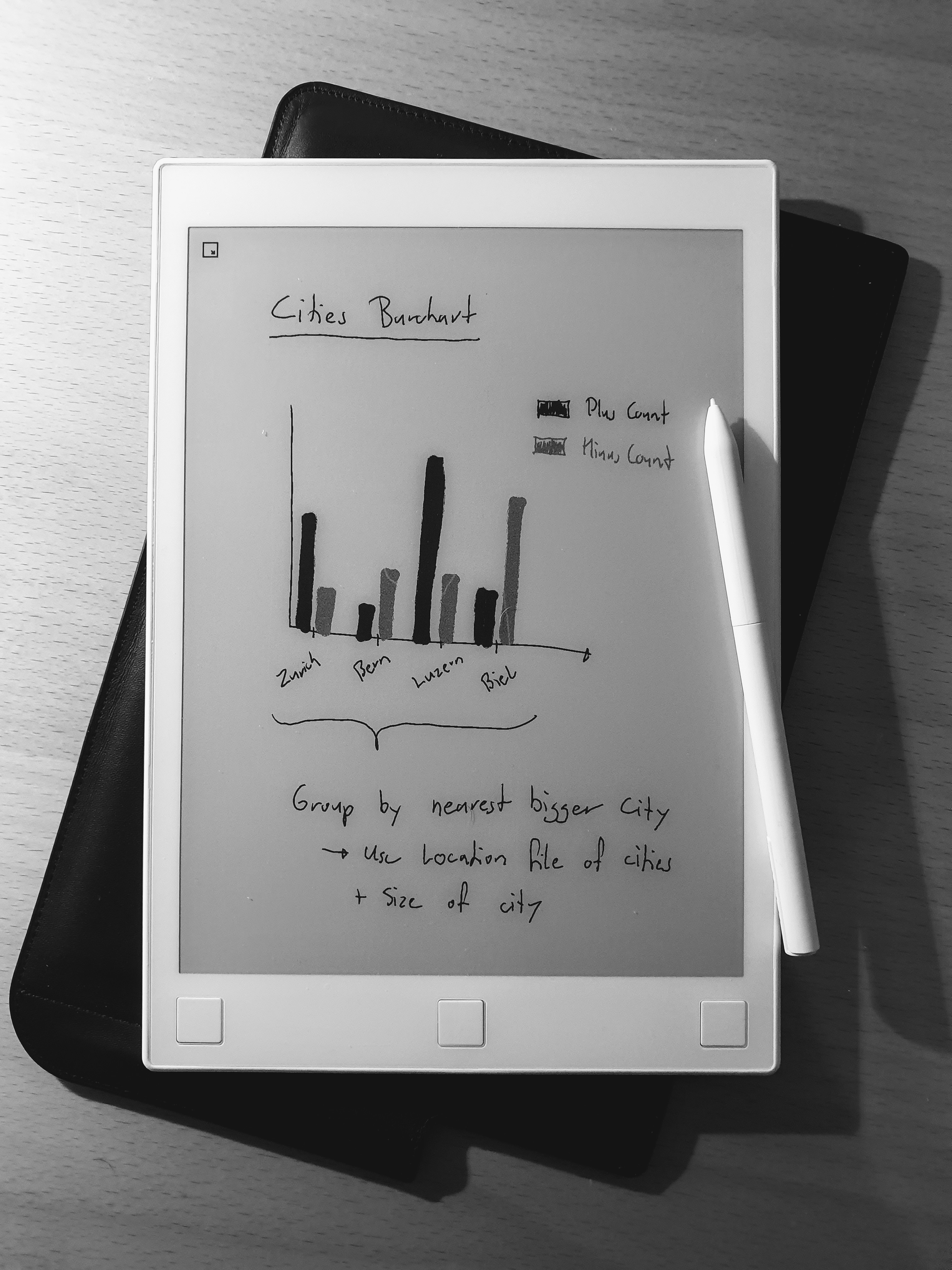 My main use-cases for the tablet are to-do lists, meeting notes, mind maps, user interface mock-ups and ugly sketches. I bought an e ink tablet because I was fed up with manually digitalizing paper. I finally chose the reMarkable because all of the developers seem to be European cats and the ecosystem is hackable to at least some degree. Also they release frequently which is a big plus.